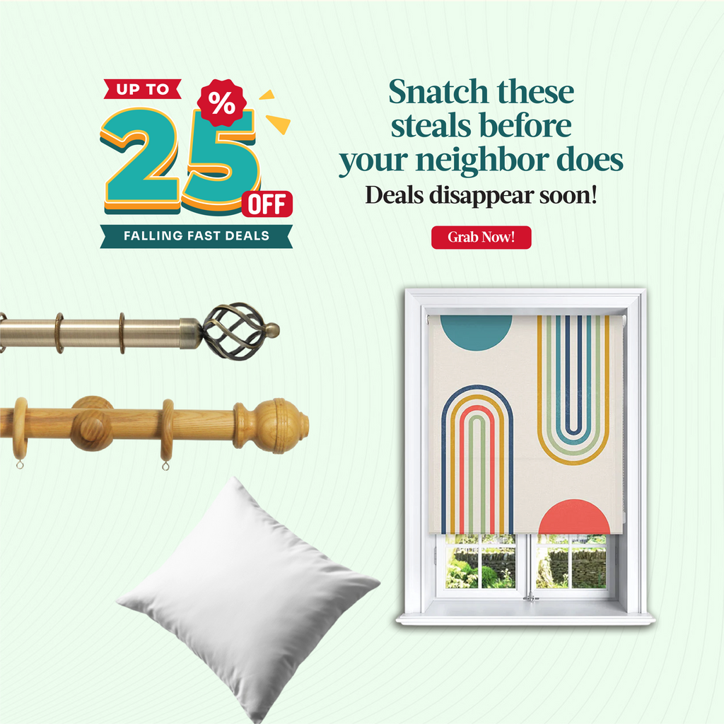 Roller Blinds: Roller blinds are the clean-cut choice for the modern kitchen. Just one smooth sheet of fabric that rolls up and down with precision. But beneath that simplicity is a serious function. Available in blackout, moisture-resistant, and wipe-clean variants, roller blinds are made to handle the steam, spills, and sunlight of daily kitchen life.