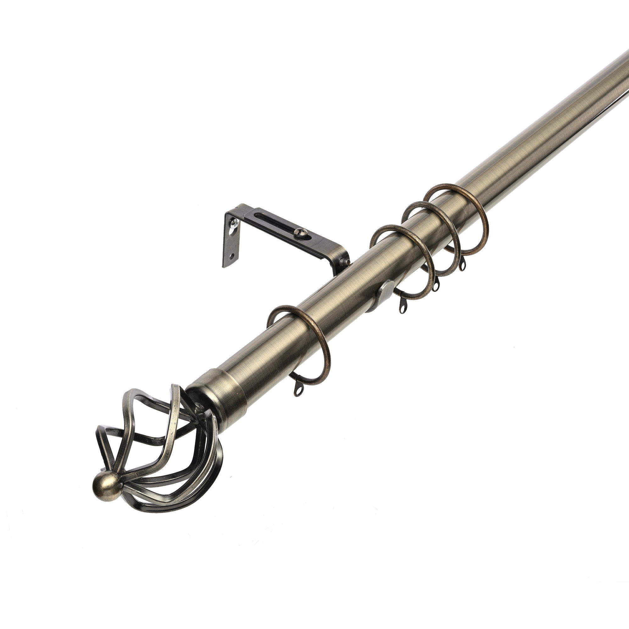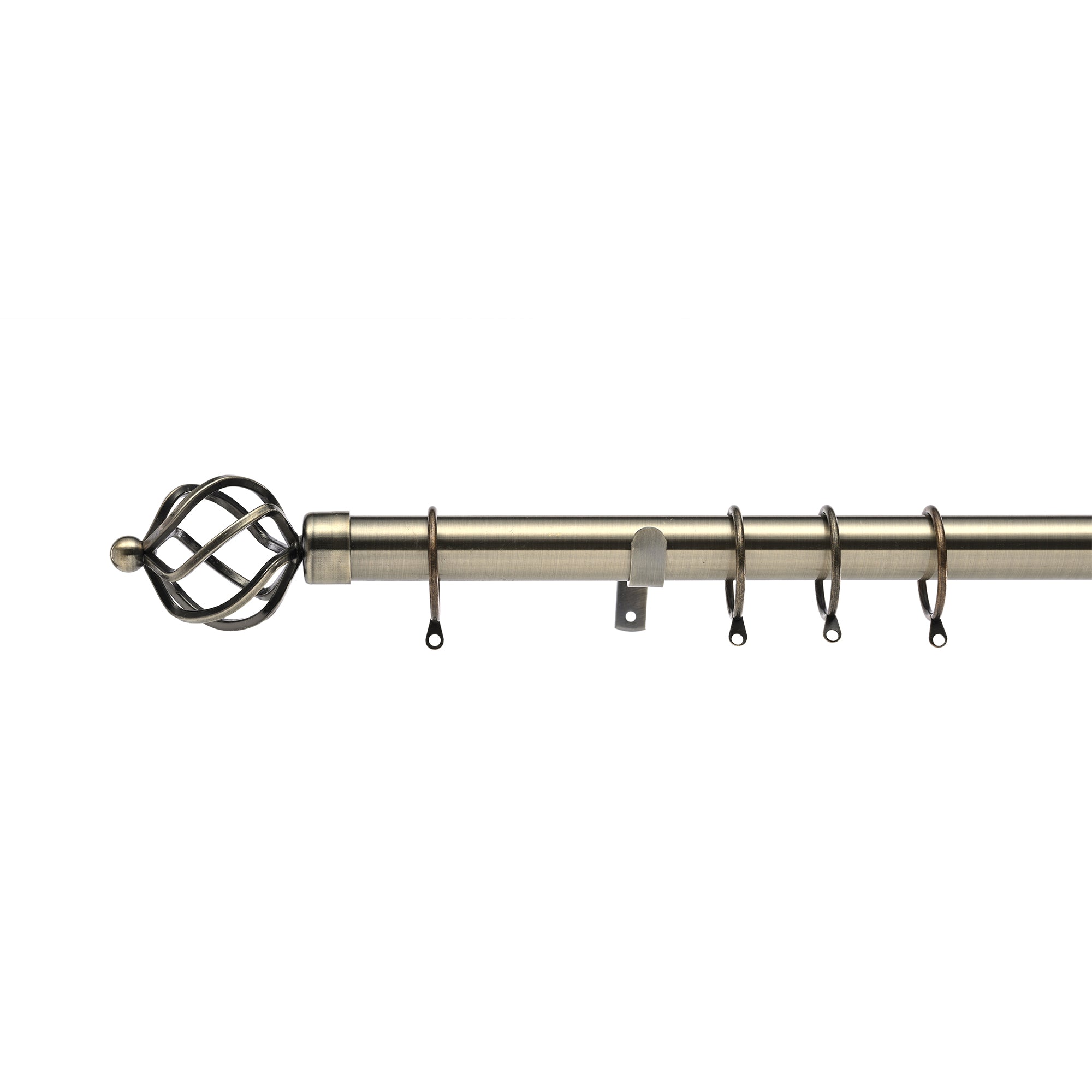 28mm Antique Brass Cage Finial Extendable Length Metal Curtain Pole