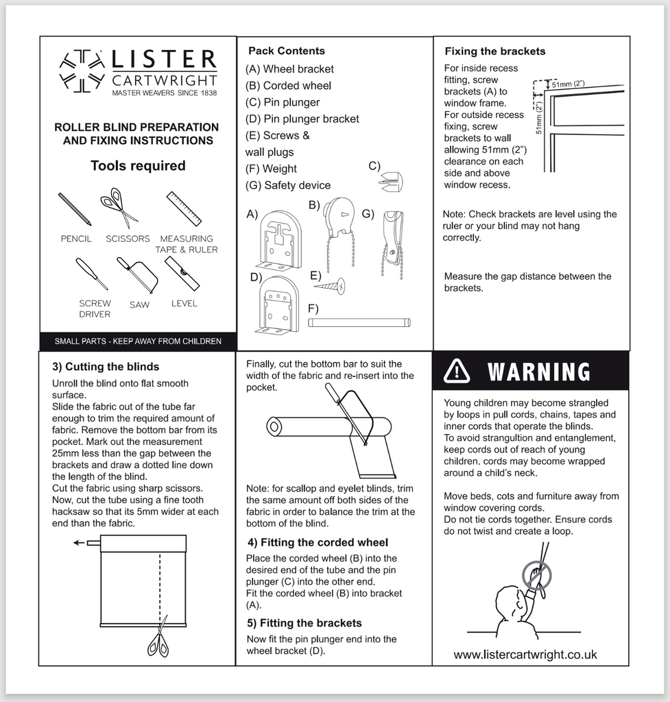 This blind feature a child safety mechanism and is available in a range of widths and colours and is supplied with fittings included.